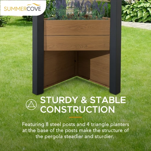 - Customizable & Stylish Design: This pergola come with 4 built-in triangle shaped planters for growing flowers, while also making the structure steadier and sturdier.