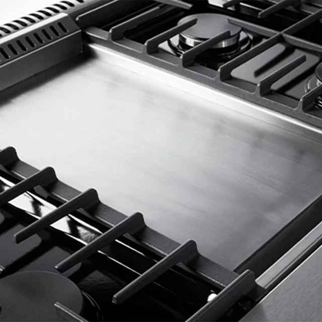 - Prepare a variety of gourmet meals with this built-in 6-burner gas range with dual ovens
