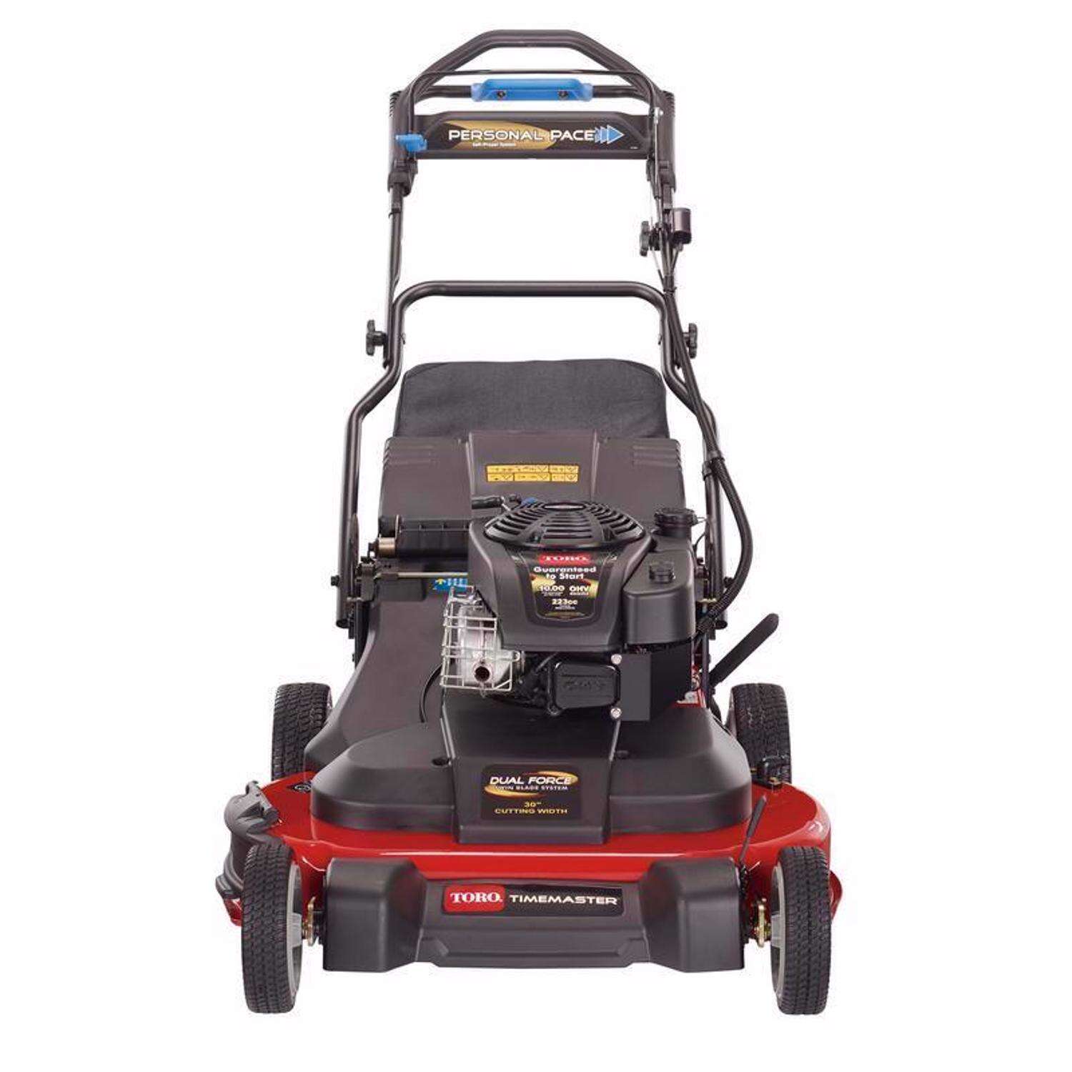 Toro TimeMaster 30 in. Personal Pace Variable Speed Self-Propelled Mulching Capability Lawn Mower with Spin-Stop When you have a big yard and a busy schedule, you need Toro’s TimeMaster on your side. It cuts a wider path on every pass so you can finish mowing faster. With a powerful Briggs and Stratton OHV engine on board, you’ll have the perfect tool that you need to have the best yard in the neighborhood.